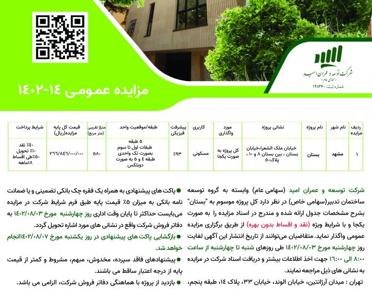 مزایده فروش ملک شماره ۱۴-۱۴۰۴