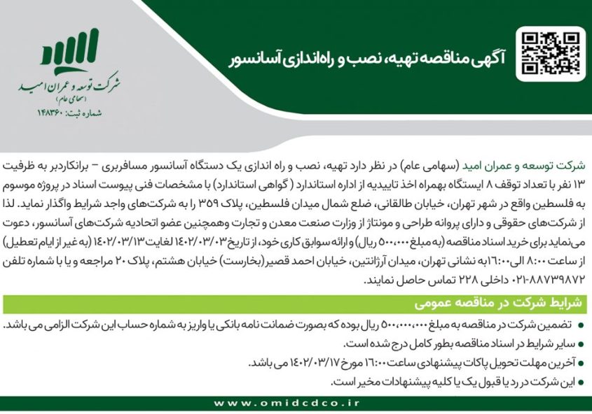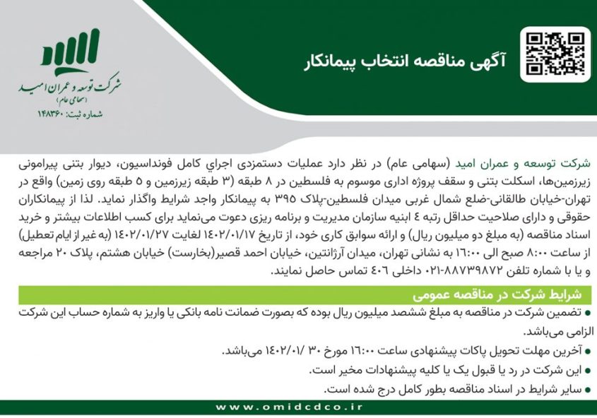 مطابق آگهی منتشره در سامانه کدال در تاریخ 1402/01/15 جلسه مجمع عمومی عادی سالیانه شرکت در تاریخ 1402/01/22 روز سه شنبه رأس ساعت 14:00 در محل سالن همایش های دانشگاه الزهرا با…