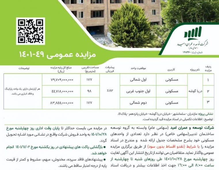 مزایده فروش ملک شماره ۱۴-۱۴۰۴