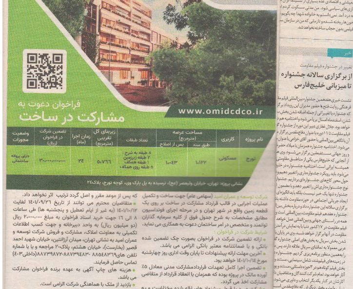 فراخوان دعوت به مشارکت در ساخت / استان تهران